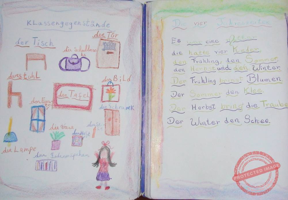 O professor é livre para preparar suas aulas, e escolher ou criar poemas, histórias, peças de teatro etc que ajudem os alunos a vivenciarem os conceitos a serem ensinados, e os alunos escrevem e ilustram com muito capricho seus cadernos de época, pois tudo deve ser bonito. São usados cadernos sem pauta, que exigem um esforço maior dos alunos para escrever seus textos, exercitando sua coordenação, mas também permitem que a criatividade dos alunos seja desenvolvida, com lindos desenhos ilustrando as matérias.