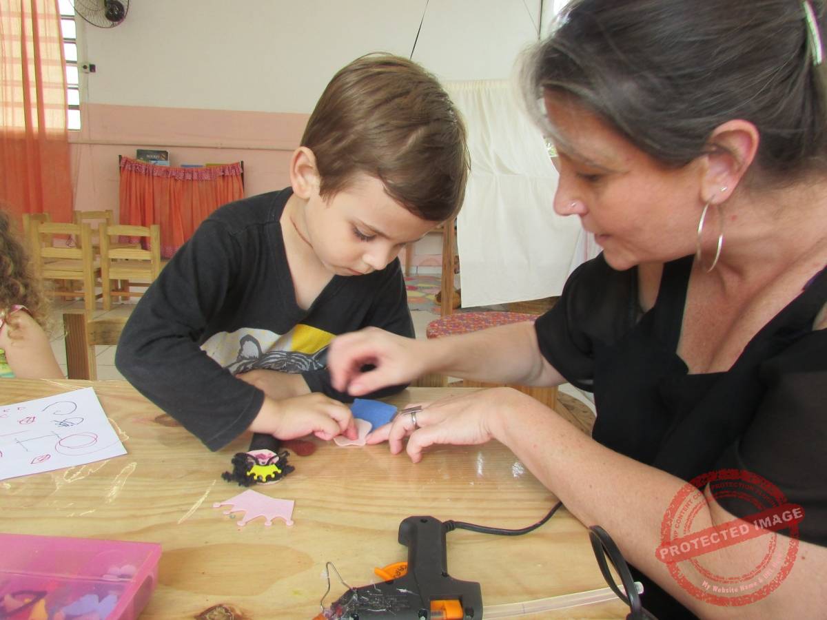 Raquel – Esse grupo com que eu estou, estou desde o ano passado. A gente já criou um vínculo com os pais e acabamos construindo uma relação de confiança. Muitas coisas que acontecem em casa, eles vêm confidenciar o que a criança falou, e até quando elas fazem uma coisa errada em casa diferente do que fazemos aqui, eles sentem a liberdade e a confiança de falar pra gente, sem ter um julgamento. Os pais aprendem muito aqui na escola. Eu sou mãe de aluno também, e eu vejo pela minha experiência como mãe, se eu tivesse com meu filho em outra escola, em casa eu não estaria dando a educação que eu dou pra ele. Aqui os pais aprendem muito mais a valorizar o Ser criança.