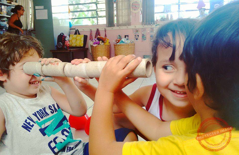 Samira – Sou professora aqui há seis anos. Eu vim do Fundamental. Eu sempre fui professora de alfabetização. Fui formada numa escola muito rígida e em contrapartida me tornei uma professora bem rígida também. Eu acreditava nesse autoritarismo do professor e nesse isolamento, nesse distanciamento da criança.[…] Nos primeiros seis meses eu me senti muito perdida. Aí, foi adaptação com a faixa etária, adaptação com a escola e adaptação com essa proposta que até então eu não conhecia, porque eu vim de uma escola muito diferente. Aí a gente começou a estudar, a escola começou a dar muita formação, a gente foi buscar algumas informações e hoje, depois de seis anos eu descobri que eu conheci muito pouco do que eu poderia ter aprendido, mas já caminhei bastante. Entender a criança, toda a complexidade e interesse que ela carrega, é uma tarefa diária. Hoje eu sou muito contente, muito feliz pela minha escolha. Acho que a escola mais me transformou como ser humano, do que eu tenha transformado na vida das crianças. Pra mim tem sido um aprendizado diário e uma quebra constante de paradigmas.