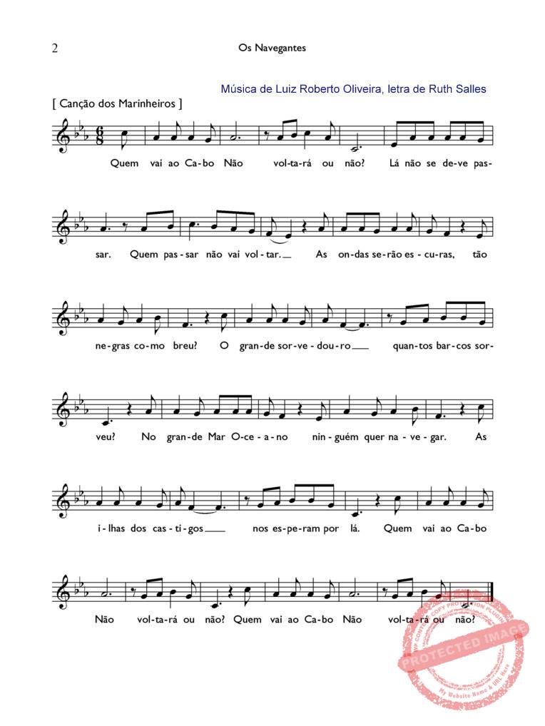 O Coro do Templo fica em semi-círculo, num plano mais alto, se possível. Em cena já devem estar o cronista sentado à sua mesa, o Infante Dom Henrique, o rei Dom João II, astrônomos e cartógrafos, se forem incluídos, e as mulheres dos marinheiros, espalhadas mais à vontade. Os navegantes e, atrás deles, os marinheiros, entram em cortejo. O que vem na frente carrega uma espécie de mastro com uma vela branca tendo no centro a cruz da Ordem de Cristo. O cortejo entra, cantando junto com todas as outras personagens, o “Hino à Vela das Naus”. Após essa entrada, o mastro com a vela deve ficar de um lado, segura por um marinheiro ou apoiada num canto, simbolizando a nau. Se possível, deve haver um padrão de navegante de um lado da cena.