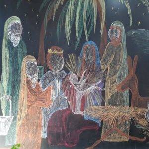 Desenho de lousa de Eduarda Tomaz, ex-aluna da Escola Municipal Araucária.