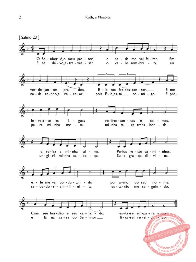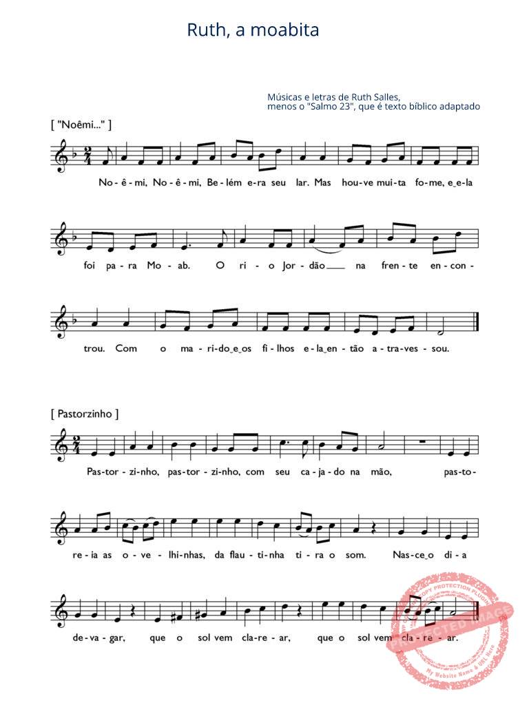 Às músicas do começo e do meio a autora procurou dar um tom de música hebraica, mas a professora de música pode modificá-las, se achar mais conveniente que sejam em tom maior. A segunda música é a mesma da peça A Estrela de Belém, de 4° ano. A última – o salmo de Davi – também está na peça Saul e Davi, de 3º ano. A professora da classe decide se as crianças cantam o salmo inteiro ou só metade dele.